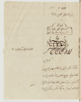 Lettre Lettre sur papier bleu (de fabrication russe, filigrane à ours et « ЯМВСЯ.1809 »), avec au v° le cachet rectangulaire daté 1223H.(1808) de عیسی الحسینی ‘Īsà al-Husaynī et le nom de « monsieur Joua[nnin ?] ; il s’agit d’une réponse non datée concernant le fils de l’auteur, qui avait quittéتهرانTéhéran, rejoint le نائب السلطنه Nā’ib al-Saltana, et lorsque son père voulut le retrouver là-bas, il avait déjà quitté تبریز Tabriz et قارص Qārs ; ayant su qu’il était à bon port, il espère des nouvelles et proteste de son amitié pour la France.